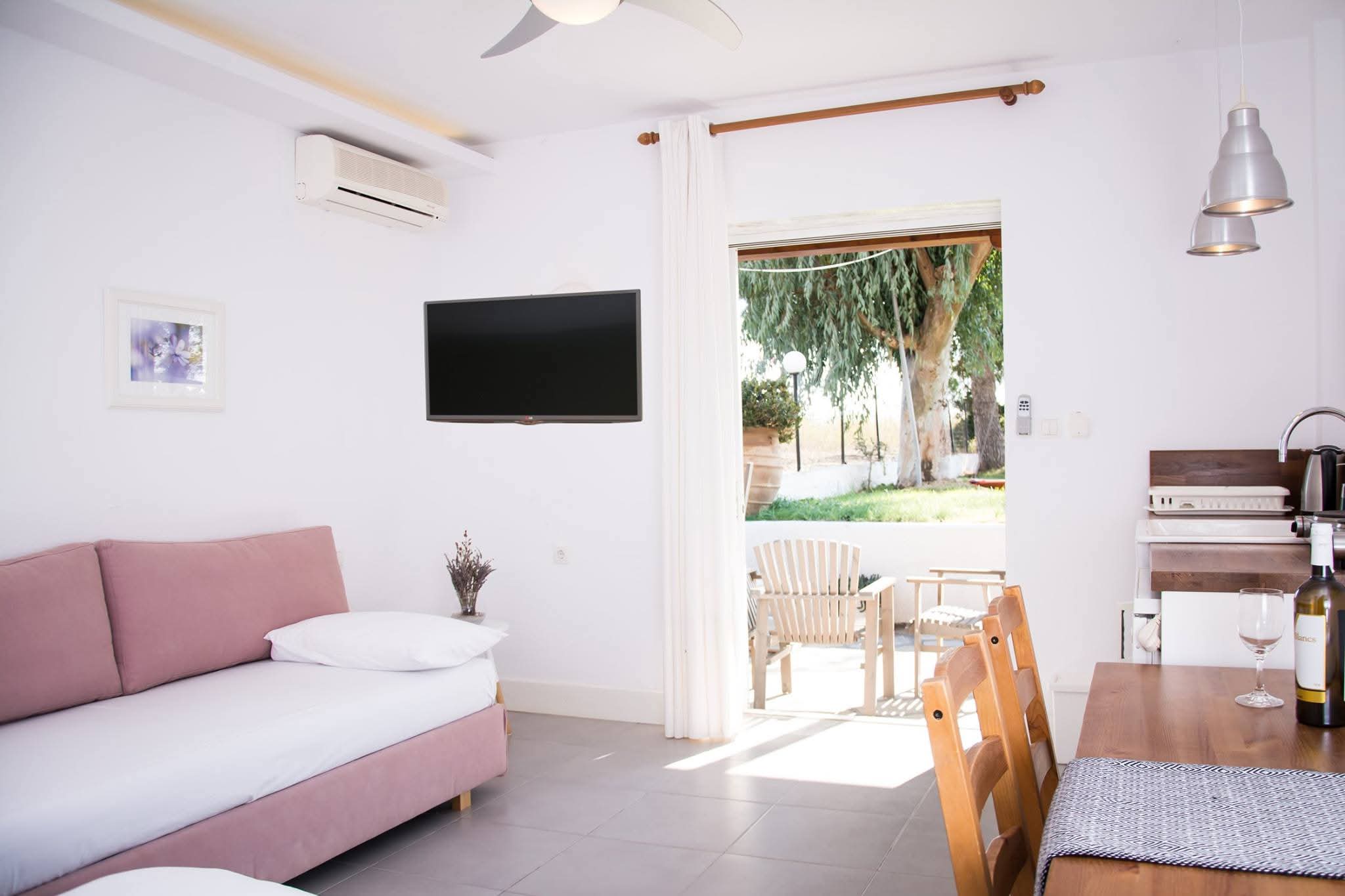 Up to 37 sq.m. space that accommodates up to 5 persons. Located on the ground floor right front of our beautiful garden. Equipped with a kitchenette, having an in – between door, separating the two spaces.